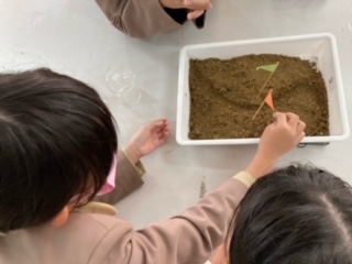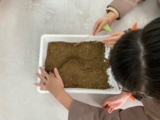 理科「水の量が増えると流れる水のはたらきが変化するだろうか」についての実験を行いました。