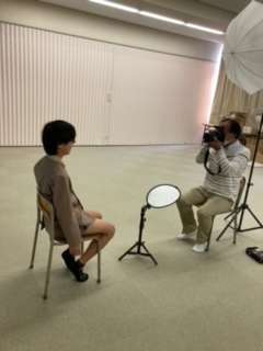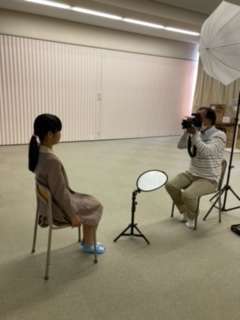 卒業アルバム用の写真撮影を行っています。職員写真のあと、6年生の個人写真の撮影を行っています。