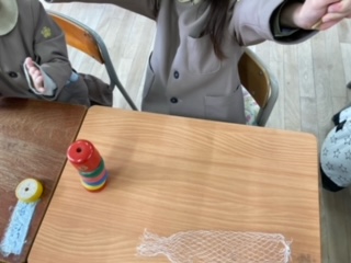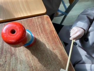 班の人と一緒に「ダルマ落とし」を行っていました。