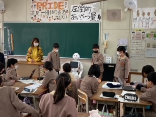 最後には、ペッパー君が、プログラミングされた内容を読み上げ、クイズを出しました。