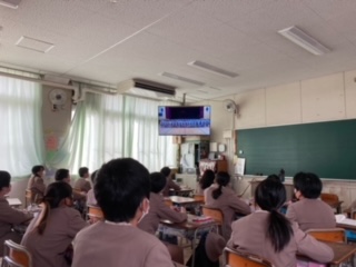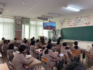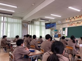 5時間目に卒業を祝う会がありました。あらかじめ、撮影していた1から5年生のお祝いメッセージや歌などと、6年生からのお礼の歌をテレビ放送で視聴しました。