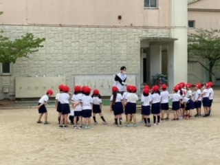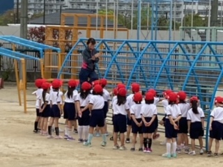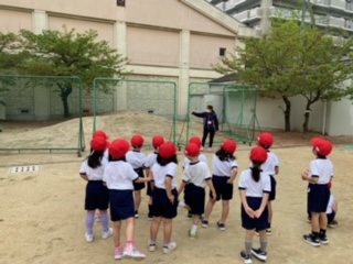 体育の時間です。運動場の遊具の使い方や気をつけることを教えてもらいました。