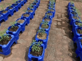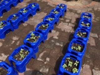生活科の学習で育てている、1年生のあさがお、2年生のミニトマトが少しずつ成長しています。