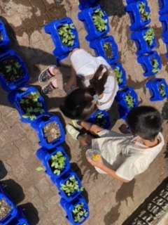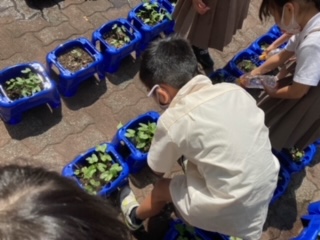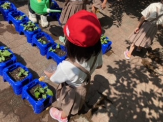 休み時間に、あさがおの水やりです。