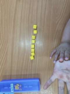 タイルを使って「あわせていくつ」に取り組んでいました。