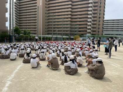 「避難訓練」(火災)がありました。お(おさない)、は(はしらない)、し(しゃべらない)、も(もどらない)を守って素早く運動場に避難することができました。