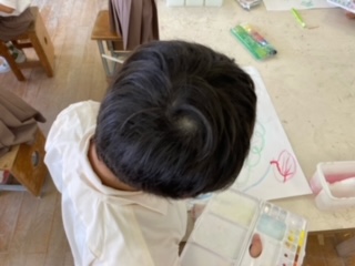 図工「まぼろしの花」に取り組んでいます。誰も見たことのない花を描いています。