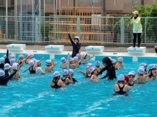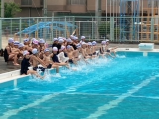 今日からプール水泳が始まりました。1年生もはじめての「水遊び」を楽しみました。