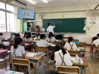 あまりのある割り算の学習です。3つのグループに分かれて、少人数学習を進めています。