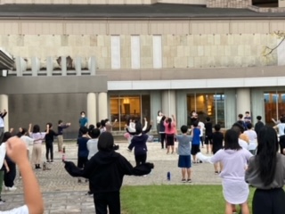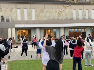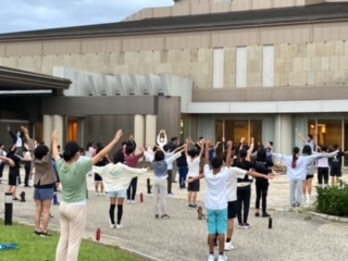 2日目の朝、全員が集まり、6時半から朝の集いを行いました。元気に過ごしています。
