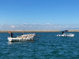 昨日、風が強く途中で中止となったカッターに、今日乗らせていただきました。