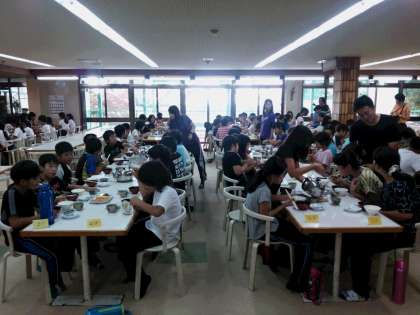 2日めの朝食の様子です。しっかり食べてこのあと鉢伏登山に挑戦します。