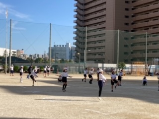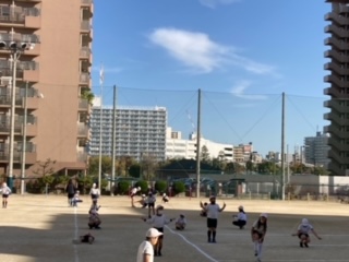 体育の時間、準備運動をかねて、縄跳びに取り組んでいます。