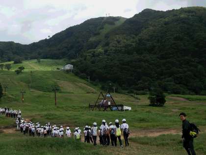 登山に出発しました。途中の眺めです。山波がわかりますか?