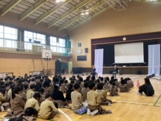 今日は、低学年と高学年に分かれて、車いすダンス公演を鑑賞しました。ほとんどの児童が車椅子ダンスを始めて見ました。
