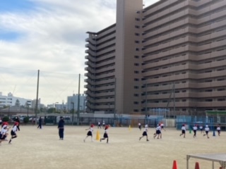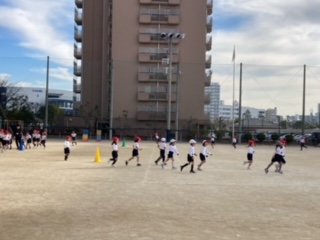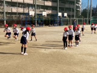 体育の時間に、かけ足を始めました。後半は大縄をしました。