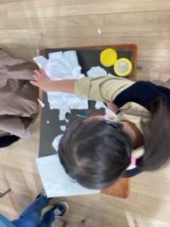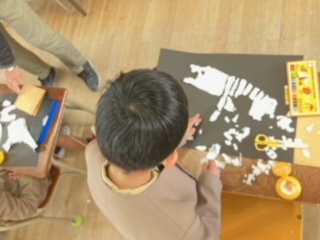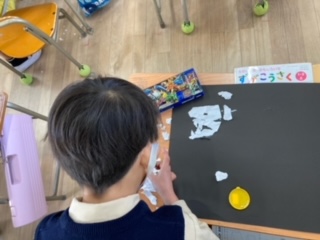 紙をちぎって貼る「ちぎり絵」に取り組んでいます。