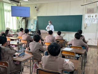 区役所の方にお越しいただき「防災授業」を行いました。色々な災害に対する正しい対処の仕方を学びました。