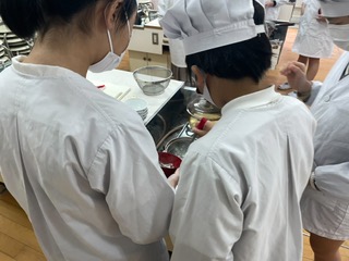 今日は、5年1組が調理実習を行っています。