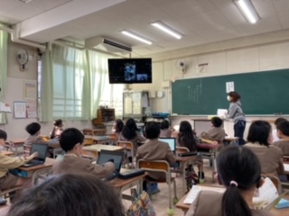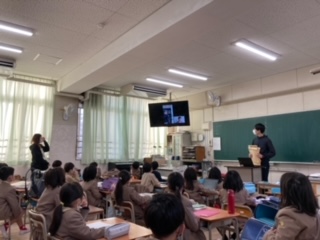 朝の時間に、給食週間のまとめのビデオ放送がありました。給食委員から、調理員さんの仕事や残食の量などの話がありました。