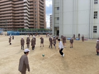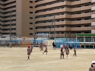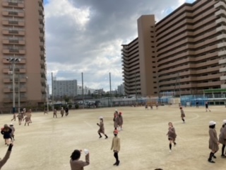 休み時間の様子です。たくさんの児童が運動場に出ていました。