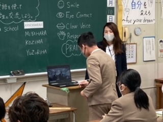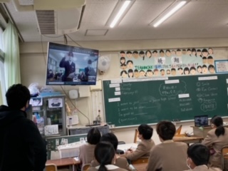 英語の授業の後半は、此花中学校2年生とオンラインで交流をもちました。