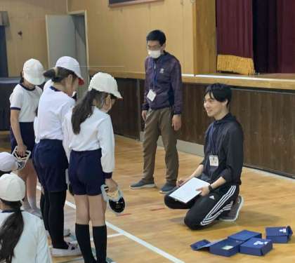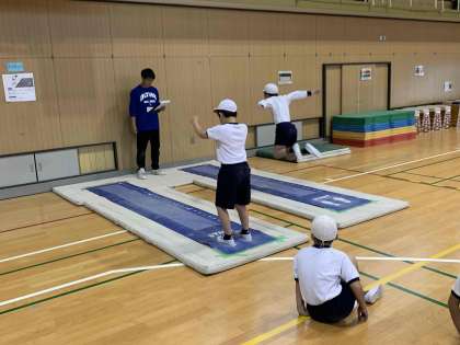 5年生が立ち幅跳びと握力の測定をしました。