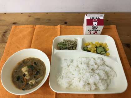 マーボーどうふは、辛みを控えめにしていたので、1年生も食べやすいマーボーどうふでした。