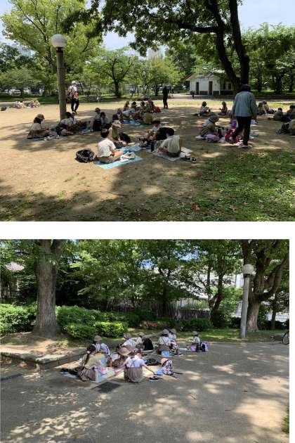 天王寺公園をぬけ、茶臼山公園まで足をのばしお弁当を食べました。公園へ行く途中には池があり、水鳥やサギがたくさん見られました。