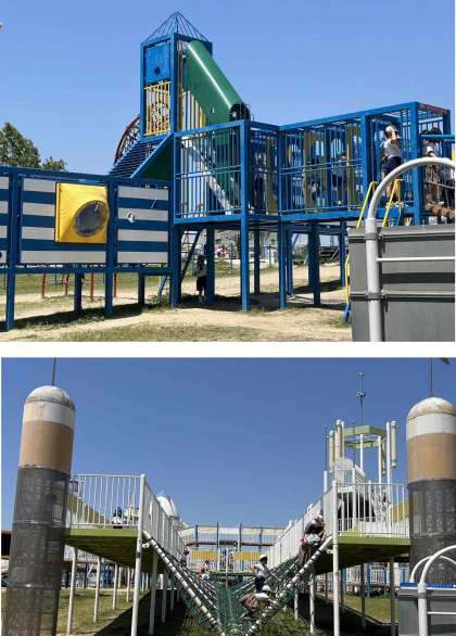 子どもたちは公園の遊具で、元気いっぱい活動しています。