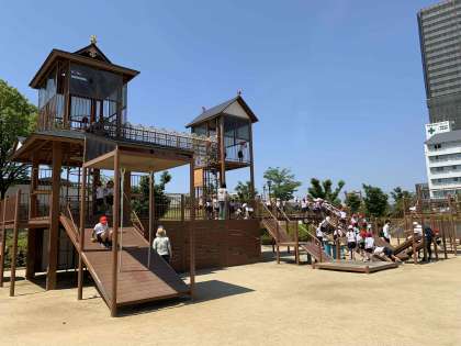 子どもたちは元気いっぱい遊具で遊んでいます。