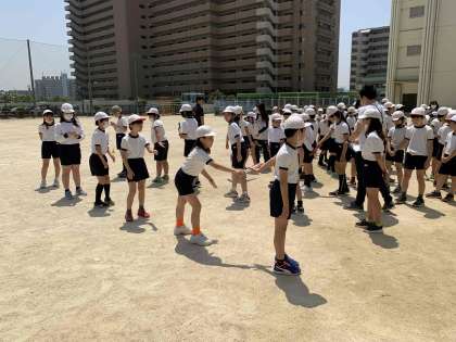 チームで並び、渡し方もらい方をゆっくり練習しました。