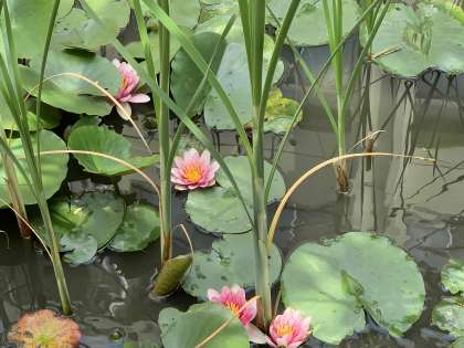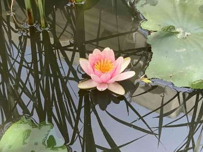 ビオトープに蓮の花が咲いています。