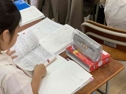 分厚い辞典に苦労しながらも、意味調べをしました。