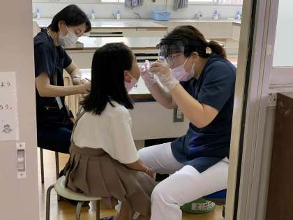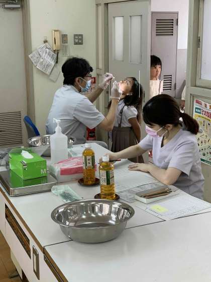 子どもたちは事前に、「なぜ歯科検診を行うのか」や「歯科検診の受け方」を予習してから受診しました。こわがる子もなく、みんなとても良い態度でした。