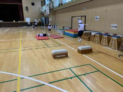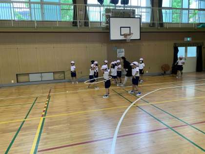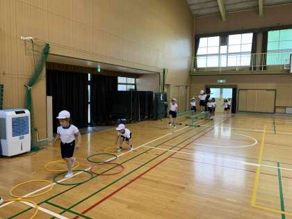 跳んだり、くぐったり、転がったり、いろいろな動きを工夫して楽しみました。