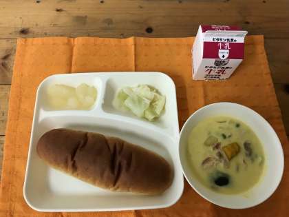 かぼちゃのクリームシチューは、ルウを給食室で手作りしました。