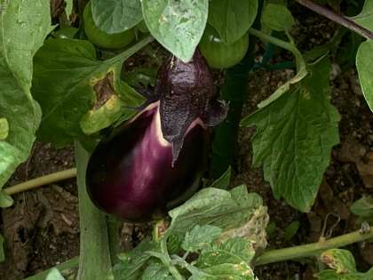 ナスの花を紹介しましたが、今日、実ができていました!!