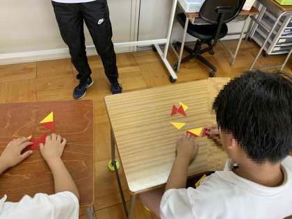直角2等辺三角形を使って、いろいろな形を作りました。