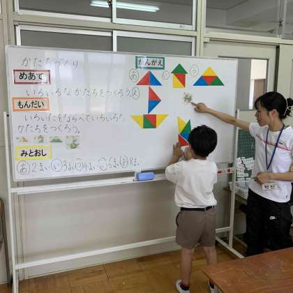 回したり、ずらしたり、ひっくり返りたりして形づくりをしました。