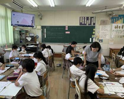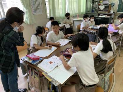 グループで相談しながら、発表ボードに描き方をまとめました。
