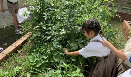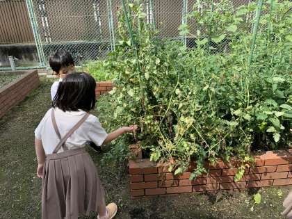 1.2年生の子どもたちが、観察をしたあと、草引きをしていました。