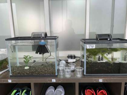 赤ちゃんメダカは、別の水槽に入れて育てています。