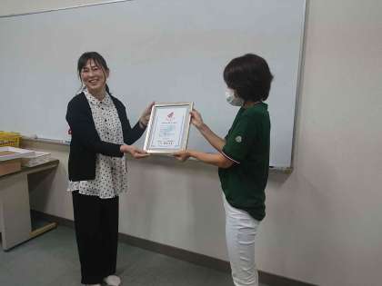 昨日のPTA実行委員会で、ベルマーク収集のお手伝いをしていただいている、学級保健委員会の委員長さんに表彰状をお渡ししました。
