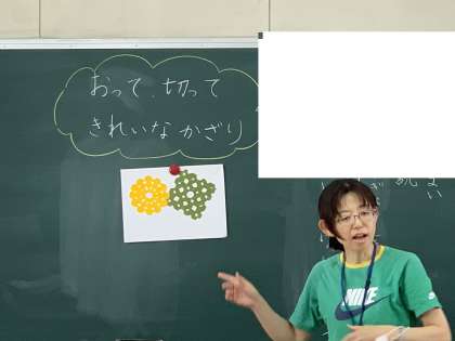 子どもたちは、はじめこわごわ折って、切っていましたが、きれいな模様ができると、嬉しそうに次の飾りづくりに取り組んでいました。