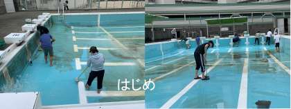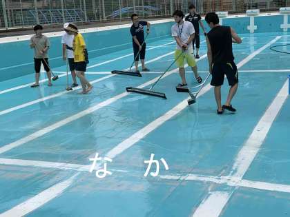子どもたちが気持ちよく泳げるようにと心を込めて掃除をしました。