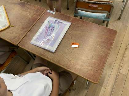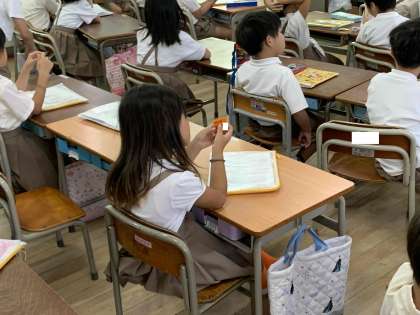 1年生に新しい名札が配られました。