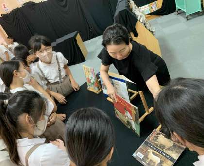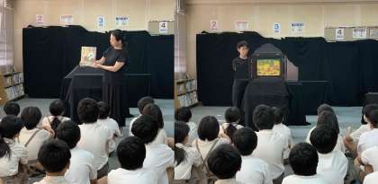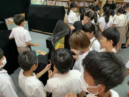 それぞれの学年の子どもたちにあった、絵本や紙芝居を選んでくださり、シアターのようなセッティングがされた空間で、読み聞かせをしていただきました。