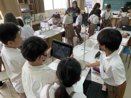 実験の結果を共有し、ふれ幅を変えても、1往復する時間は変わらない。ということに気づきました。