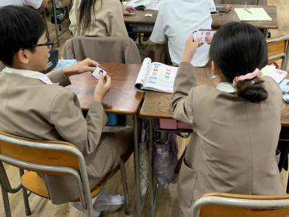 ペアで、会話を練習する様子は、積極的に英語に親しもうとする態度がよく表れていました。